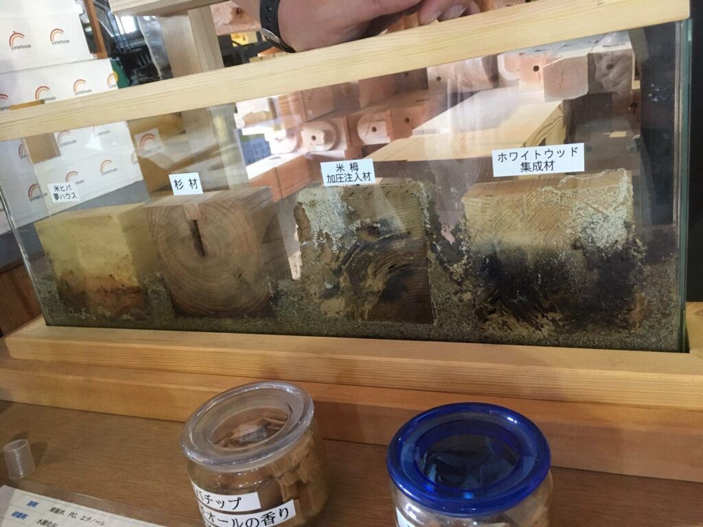 *加圧注入材、集成材にシロアリが集まる様子が見られました。