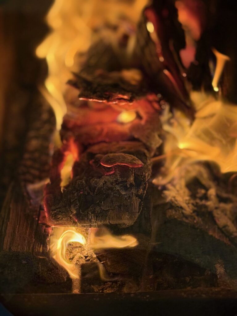 そして薪がオレンジ色に光って徐々に小さくなっていく様も美しく。