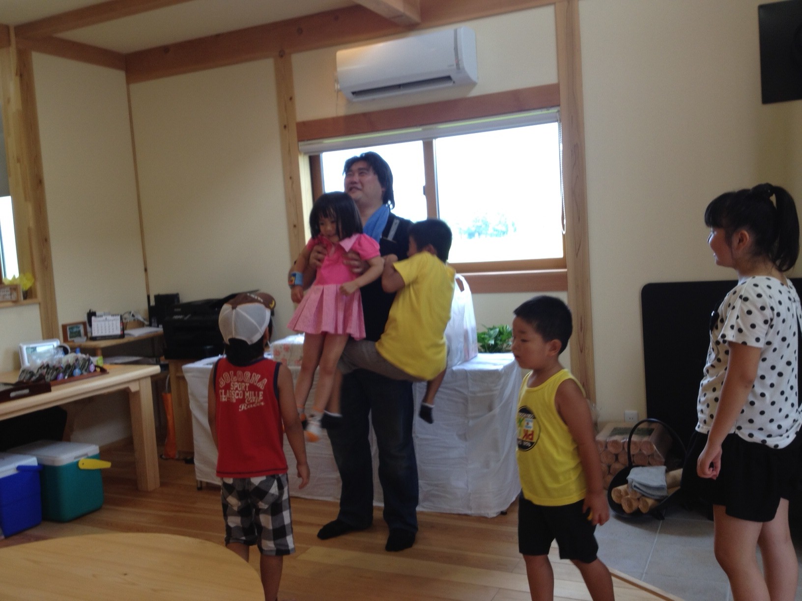 お子様たちも、木に登るが如く大作社長の太い腕につかまり、「だっこして~」のおねだり。 子供にも人気のある大作社長でした。