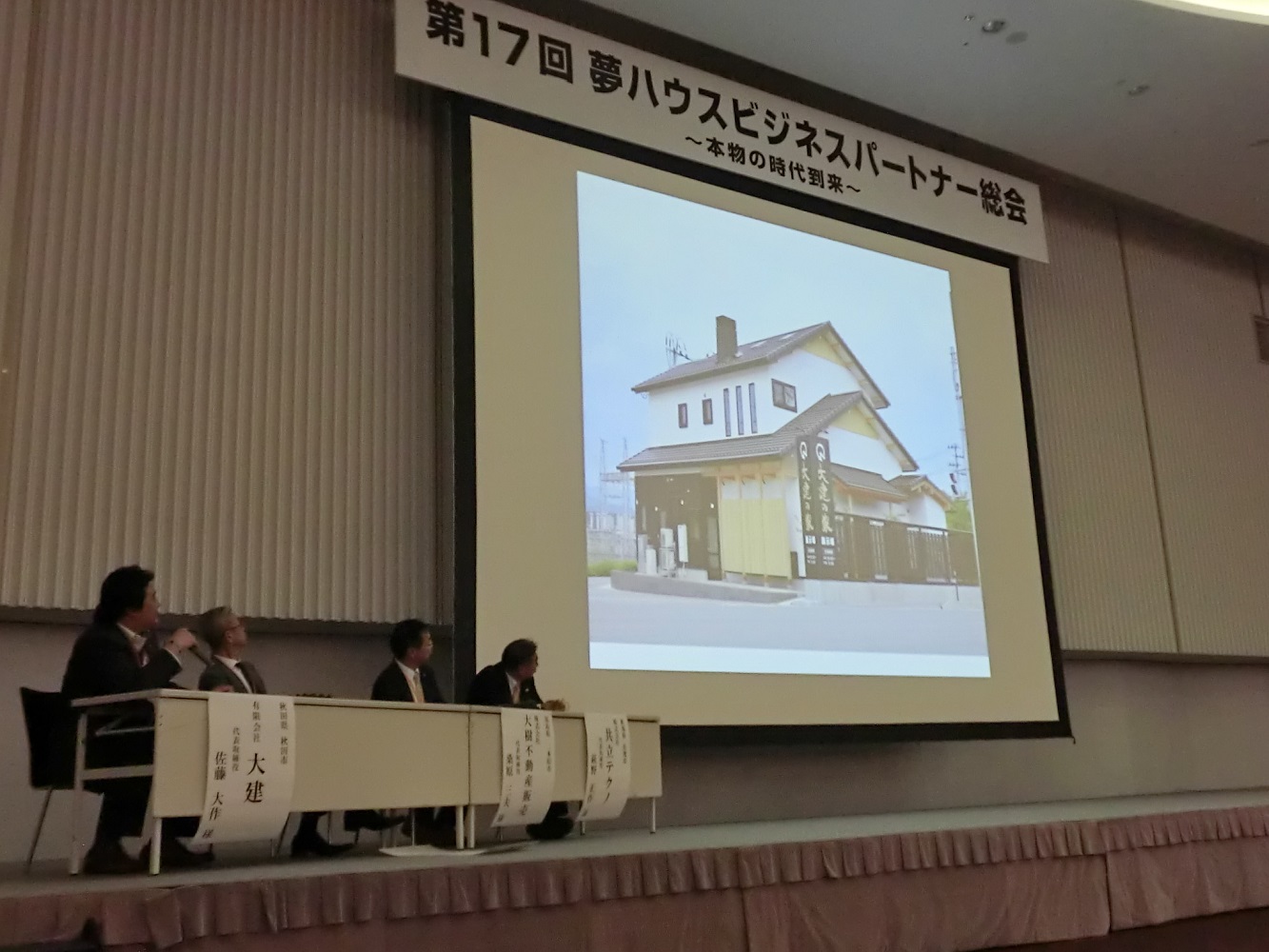 こんばんは、高橋です。 夢ハウスビジネスパートナー総会から帰ってまいりました! 今年は台風の影響で参加企業様は約260社、安藤忠雄氏もお越しいただけませんでした。が、 代わりに弊社代表の佐藤大作が吼えましたよ!!