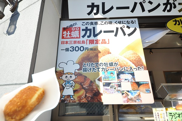 帰りにはもちろん、しっかりと社長引率のもと、ご当地グルメを満喫。これは牡蠣がゴロゴロっと入ったカレーパン。激ウマでございました♪ この研修旅行で、益々一致団結した大建スタッフ達でした。 |