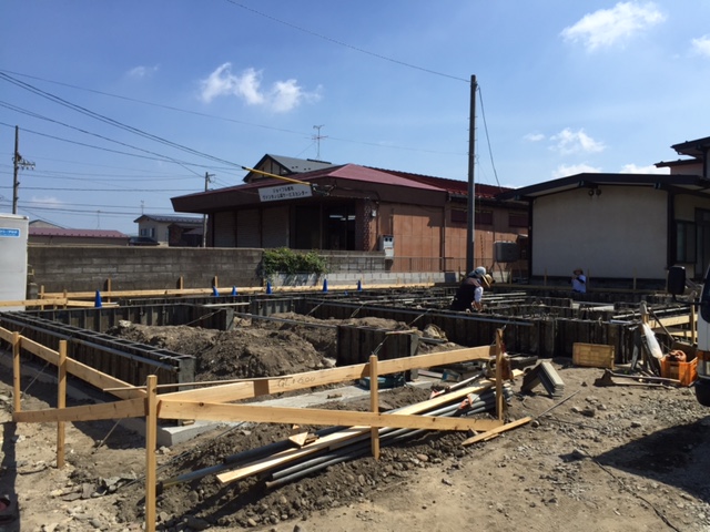 こんにちは、高橋です。 下は先日の休み(僕は水曜休み)に土崎の美容室マニッシュさんに娘の髪をカットしてもらった帰りに、同じ土崎で着工しているI様邸の現場に寄った際の写真です。 基礎工事が始まっているのですが、朝から打合せ・現場担当の小松さん(奥にいる白いポロシャツ)がびっちりと張り付いていました。 朝なのにすでに30℃近くの猛暑日の中、頑張ってもらっています。小松さん、ありがとう!