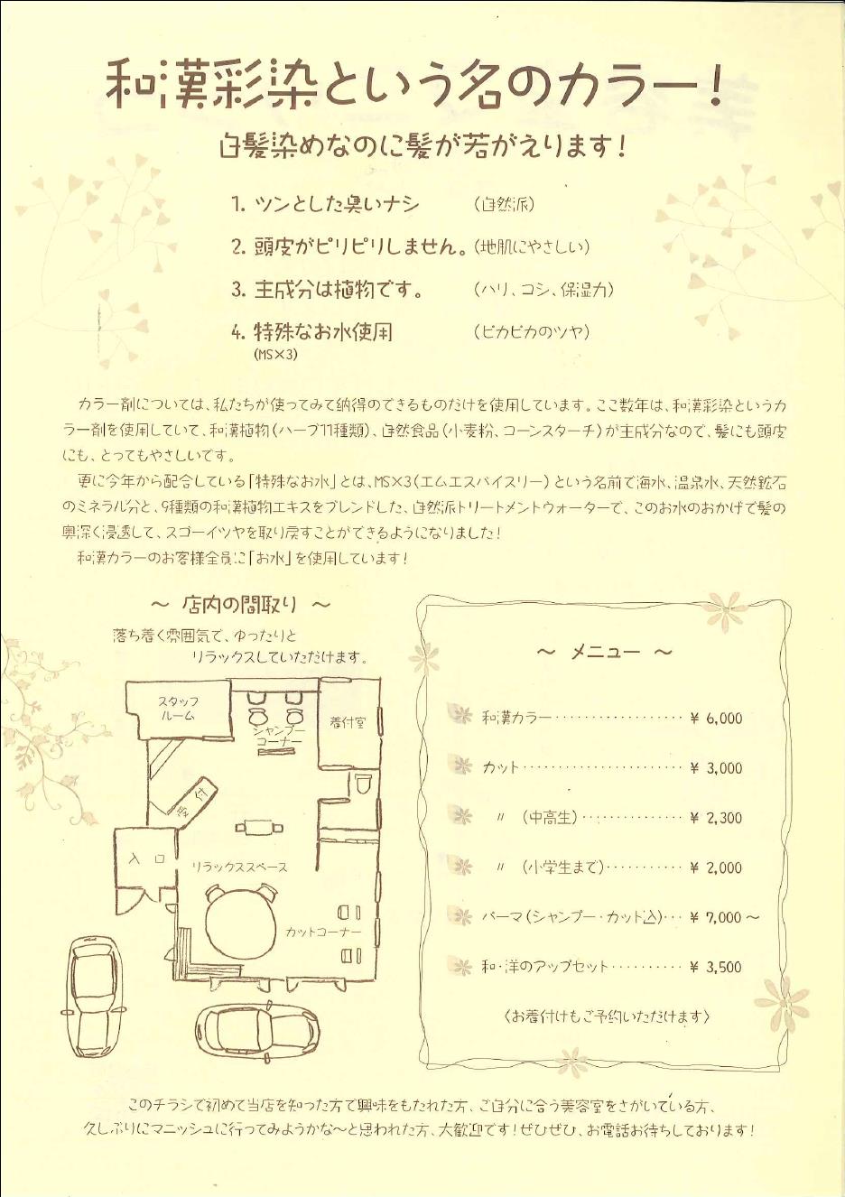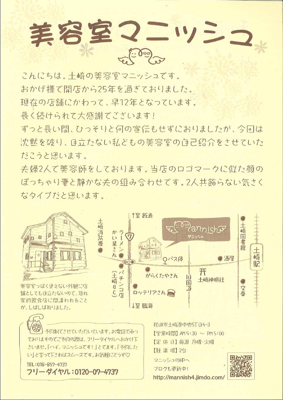 こんにちは、高橋です。 僕が通っている土崎の美容室「マニッシュ」さんが下記のようなリーフレットを作成されましたのでご紹介いたします。