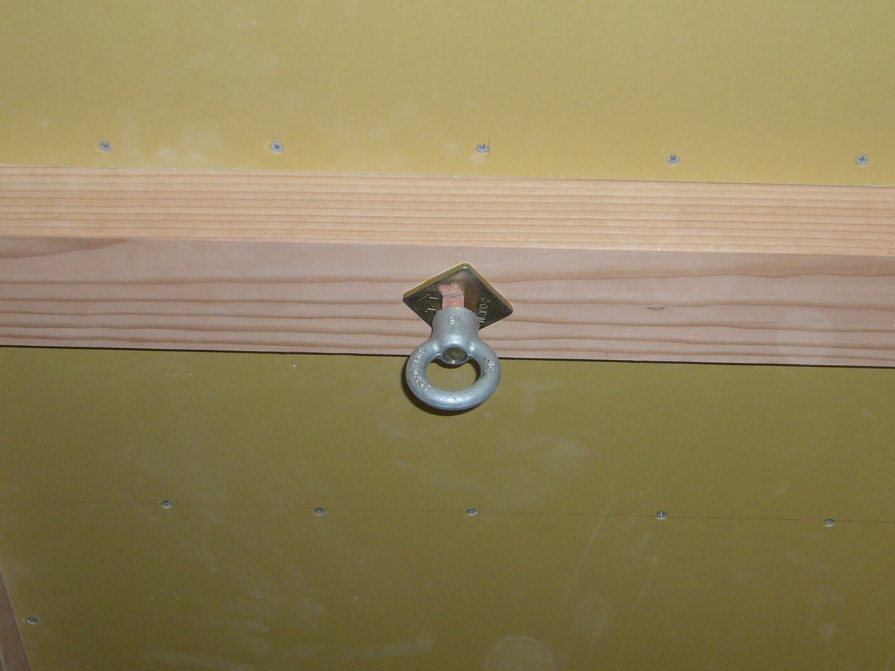 上の写真は、ハンモックを下げる金具を梁に取り付けたところです。