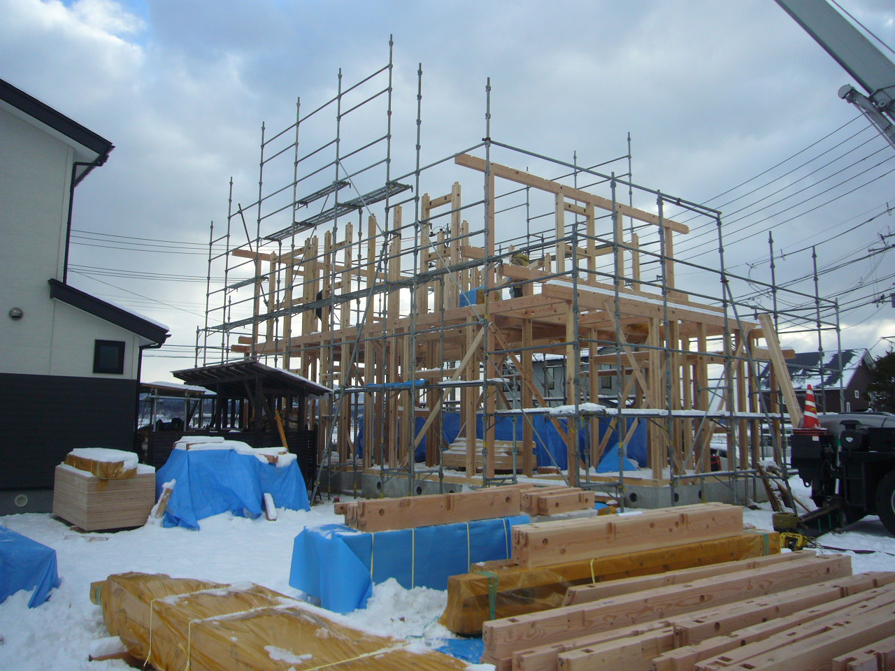 秋田市飯島字薬師田にて年明けより建て方が始まっています。