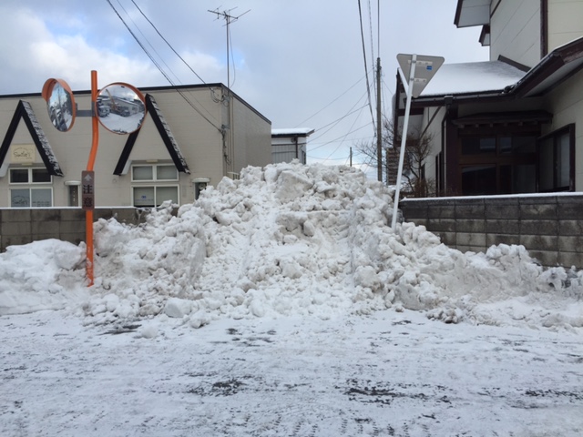 この写真は僕の家の近所の小路の様子です。数時間後にはトラックが雪を運び出して無事開通。