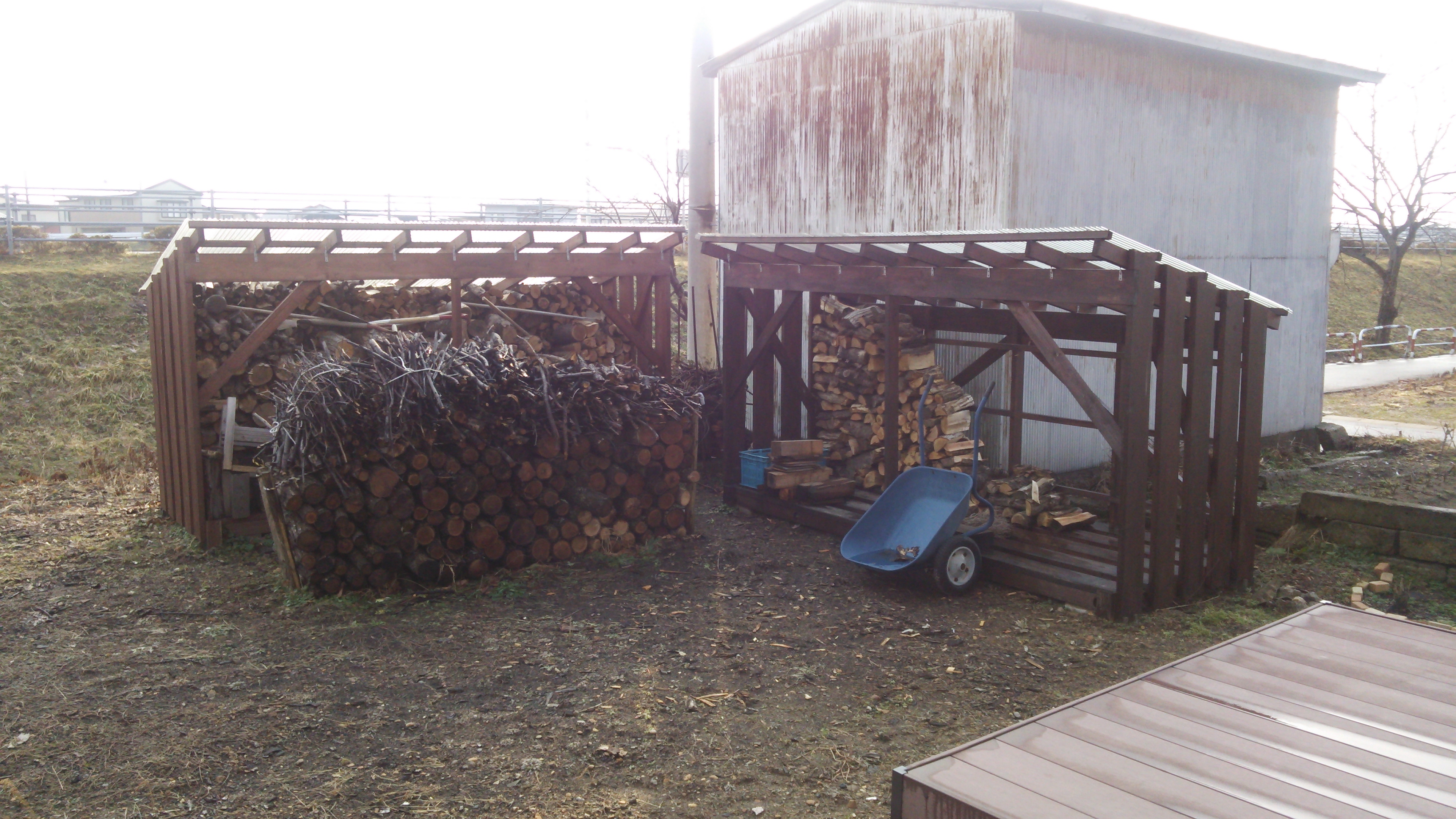 外に見える薪小屋1号2号は、大建で請け負わせていただきました。