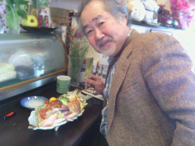 左から、メガちらし、ランチ寿司、畠山氏。 |
