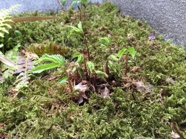 展示場の庭にこっそり植えてみた「ミズ」が顔を出しました。可愛いですね!