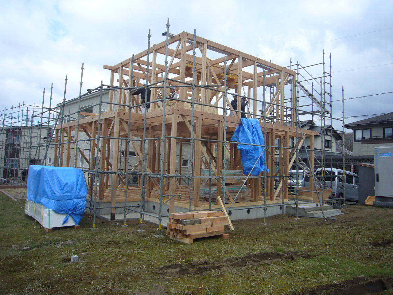 写真は秋田市桜台K様邸の建て方の様子です。