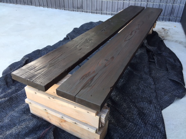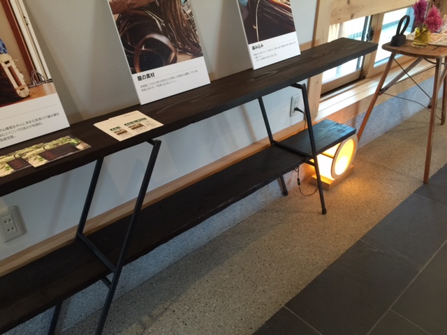 こんにちは、高橋です。 仕事の隙を見つけて展示場の片隅でDIYを。 普段はほぼDIYはしません。こう見えて手先は不器用なんです。 ですから今回はとっても冒険しています。 入手した古い足場板の杉材の表面を工場の武藤谷さんに薄く削ってもらいオイルステンで塗装。 写真は塗装後。塗装前を記録しておけば良かった。。。 表面はボロボロ凸凹でも削ると綺麗な木目がでてきました。風雨にさらされていても木の耐久性は素晴らしい! この板を何に使うかというと・・・。 こんな感じでアイアンの脚とあわせてギャラリ用の棚にしてみました。 どうでしょう? 初めて作ったにしては自画自賛でございます。 (実質、ただ塗って組み上げただけ)