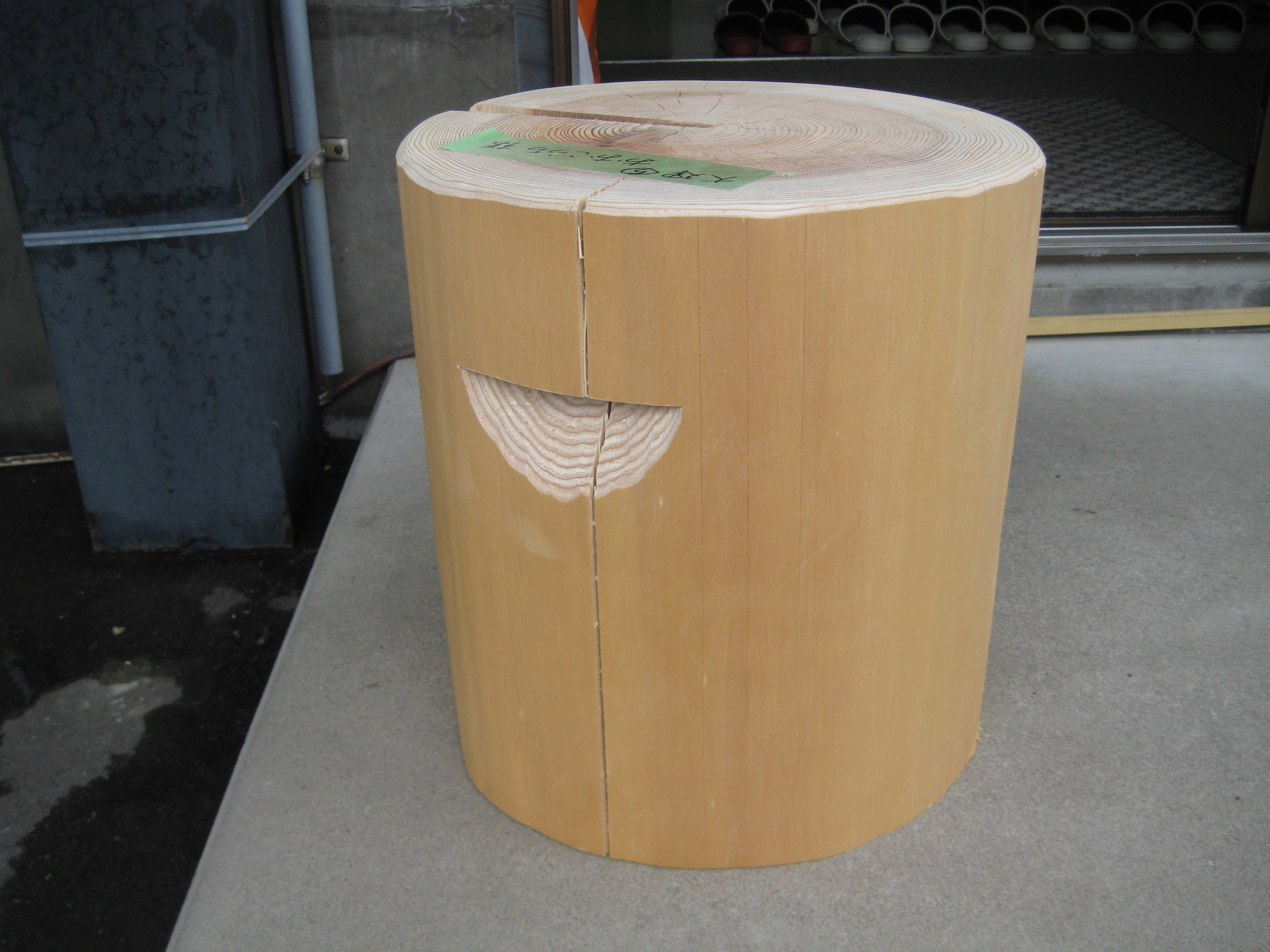 先日、高橋課長引率で伐採ツアーに参加されたお客様のもとに、ツアー時のクイズ大会で当たった丸太の椅子が届きました。