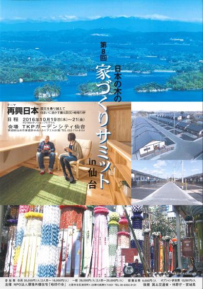 「家づくりサミット」は、全国から多くの有力工務店が集う年に一回のイベントです。 地元で頑張られている工務店さんとの情報交換の他、サミットプログラムでは、G.W.ニコルさんの基調講演や「復興」をテーマとしたプログラムが盛り沢山な内容となっていて、様々なアプローチから「木の家づくり」の魅力を再確認・再発掘することができます。一般の方というよりは工務店さんや建設関連の方々向けのイベントですが、ご興味のある方(工務店様)はぜひご来場ください。