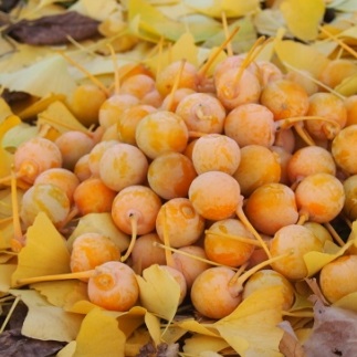 踏むとめちゃくちゃ臭いしかぶれてしまう人もいるので敬遠されがちですが、その中に美味しい銀杏が潜んでいるのですよ!! 我家では採ってきた銀杏を水に漬けしばらく放置したり土に埋めたりして、実(外皮)を腐らせてから種(仁)を取ります。 実が臭くてしょうがないのでこの処理が大変なのですが。。。 絶対に外(庭の片隅)での作業をお勧めします。