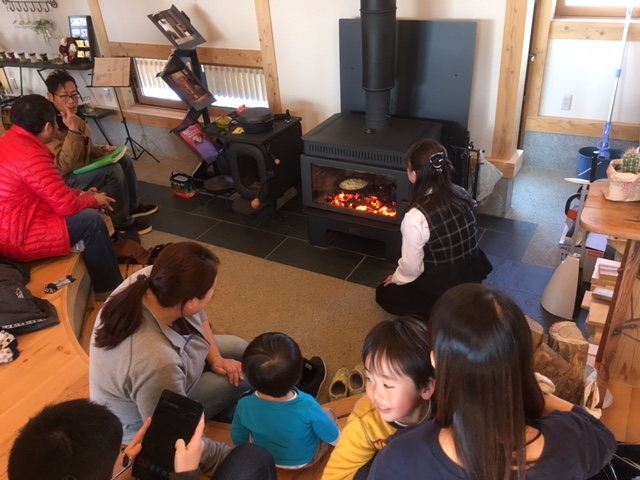 レシピを教えて!とのご要望が多くありましたので簡単にご紹介しますね。 ①鳥ひき肉とネギを味噌・みりん・砂糖で炒めます。(少し濃い味で) ②ピザ生地(市販品)にのせ、チーズをかけてストーブの中へ。 ③生地やチーズに焦げ目がついてきたら(約1分くらい)、一旦取出し浅葱をちらせ、ミョウガをトッピング。 ④もう一度薪ストーブにいれてしんなりしたら完成。 簡単でしょ?? 白ワインが合いますよ~~。 ノーマルなピザも簡単にできますので、薪ストーブ持ちのご家庭はもう宅配ピザは不要になりますね。 今週土日も開催しますので、ぜひ遊びに来てください。一緒に楽しみましょう!