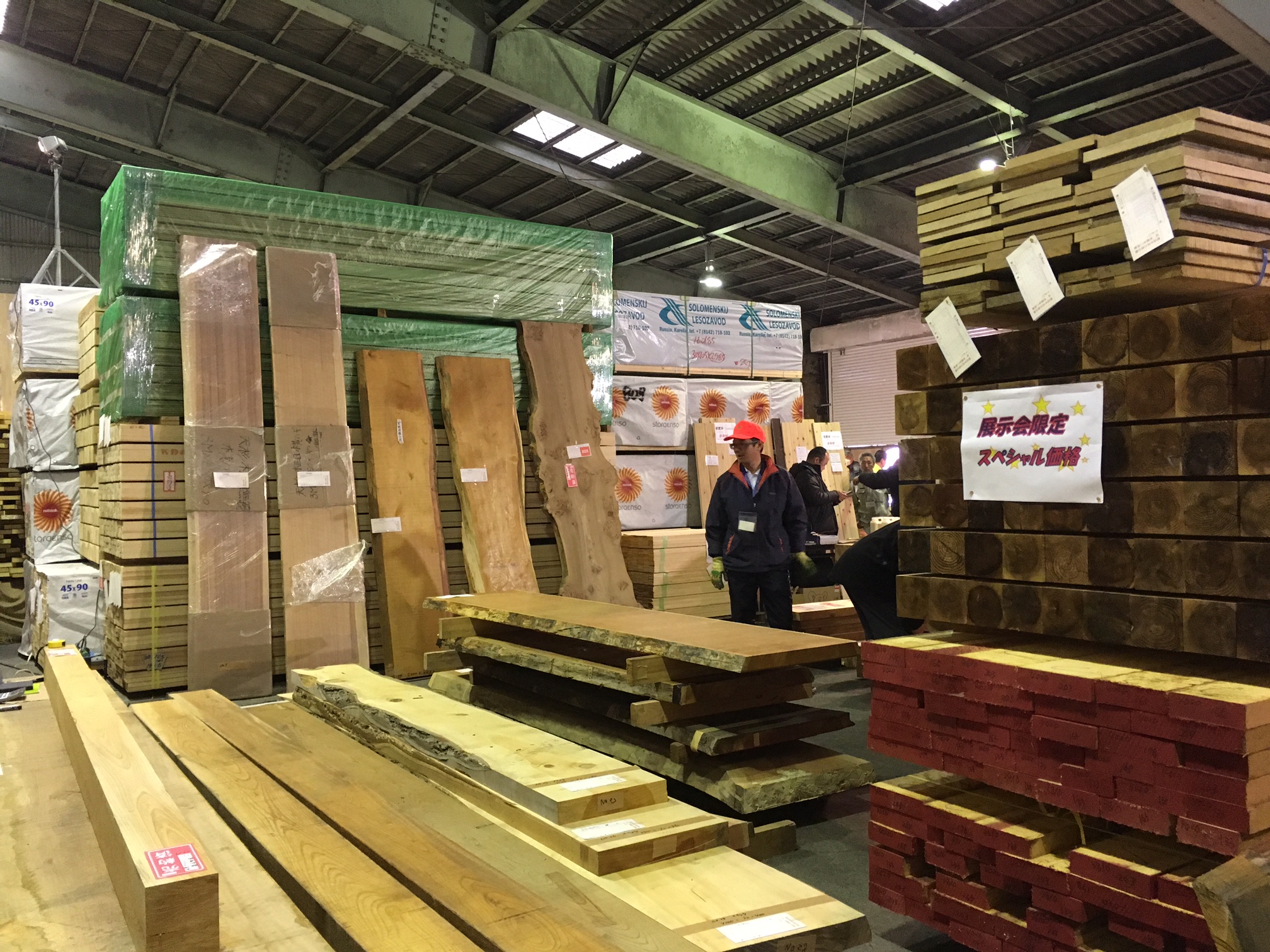こんにちは、高橋です。 今日は朝から木の買付に行ってきました。 主なお目当てはテーブルの天板や腰板、天井板等です。 一般の方はご入場できない、年に1回の特別な市で弊社からは営業班全員と小松、畠山が参加。 来られた方々を見ると、ハウスビルダーは少なく圧倒的に材木屋さんが多い印象でした。 掘り出しものから1級品まで様々な材が所狭しと配置されている中、社長の目利きで良い材も数枚見つかり、無事交渉の末に落札!! 僕も1枚、ビビッときてしまった楠(クスノキ)の天板を選ばせていただきました!! お客様へのご提案用にも杉の天板・腰・天井板を数枚ストックさせていただきますので、どのように加工・ご提案できるか、これからかなり楽しみです。 大建のお施主様も、今回の市ではありませんが、オーダーでテーブルを作る際には天板選びから同行させていただくことも可能ですので、ご希望があればおっしゃってください。既製品のテーブルとは別次元の存在感や雰囲気を与えてくれる一生モノの価値があります。リビングの主役にいかがでしょう? |