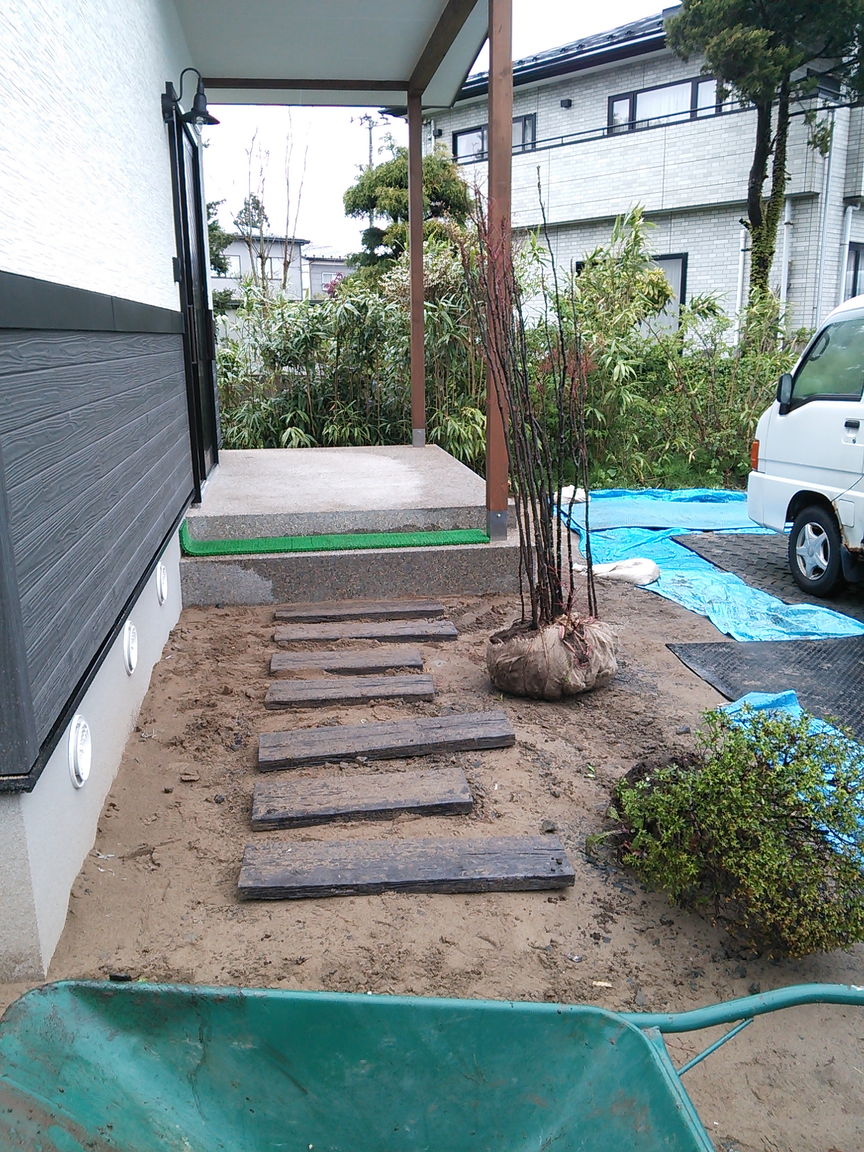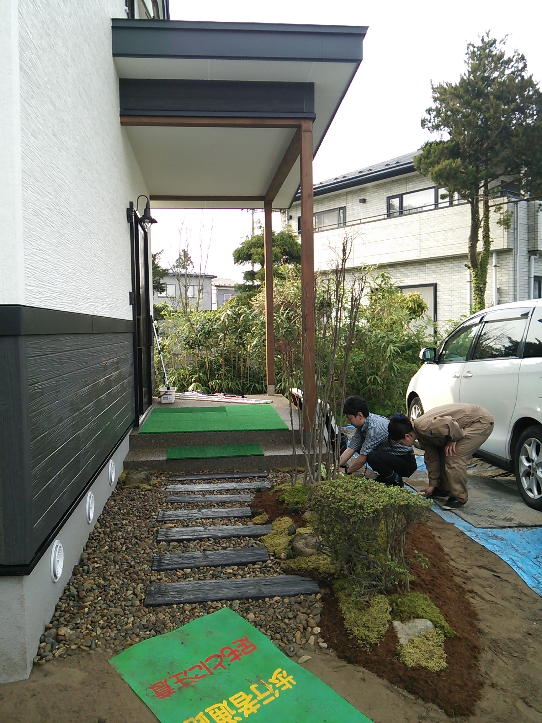 こんにちは、高橋です。 一昨日・昨日と秋田市横森完成内覧会を開催させていただきました。 お越しくださいました皆様、ありがとうございました。 また、会場をお貸しくださいましたお施主様、ありがとうございました。 写真は、お施主様撮影の玄関アプローチ工事の様子。 今回はお施主様も参加!(アプローチ工事をお施主様と一緒に行ったのは今回が初) 一つ一つの素材や植物、コンセプトなどを現場でお話ししながらの作業でした。