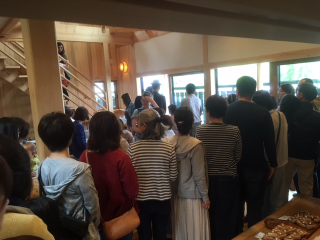 道路まで行列ができて、オープン10分でこんな具合。これが約3時間ほど(5回転くらい)続きました。 混雑具合はご想像にお任せいたしますが、あの広いリビングが山手線状態。 来場者は、昨年で500人越えでしたが、今年はそれ以上でした。正確に数えていませんが、ざっくり600人位かな。 たぶんもう少し来ていたと思いますけど。 フクシマさんのコロッケも、昨年の反省(秒殺)を生かして大幅に在庫の準備をしてきていただいたのですが、2時間ほどで完売! konohaさんのキッシュやマザー食堂さんのベーグル、TERRAさんのパンやスープも完売。 ほんとあっという間。 このイベントは、irutocoさんをはじめとする出展者の方たちの意識と情熱のレベルが物凄く高くて熱い! そして、皆さん秋田を愛しておられる!! 共通の志や意識をもった人たちが集まってこそ、このようなイベントは大成するのでしょうね。 ご来場の方も、出店者の方も、みんなが楽しめるイベントになってほんと良かったです。 めちゃくちゃ疲れましたけど。(笑) 1日過ぎて、あらためて、秋田にはこんなに素晴らしいヒト・モノ・コトがあるのだと実感しました。 大建の家づくりも出店者の方たちに負けないよう、情熱を燃やし続けてまいりたいと思います。 皆様、本当にお疲れ様でした。そして主催のirutoco伊藤さん、ありがとうございました!!