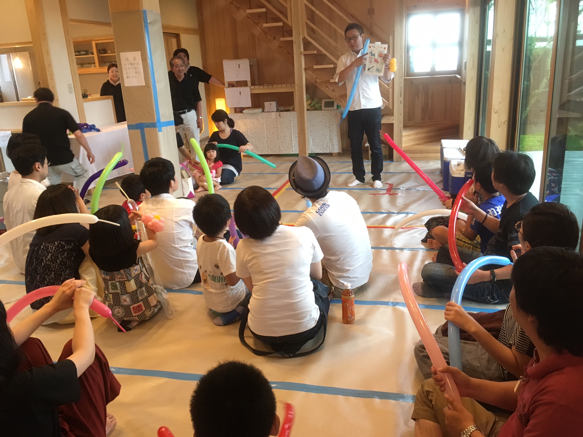 写真はバルーンアート体験の様子。(二日間で午前・午後と2回にわけての開催)