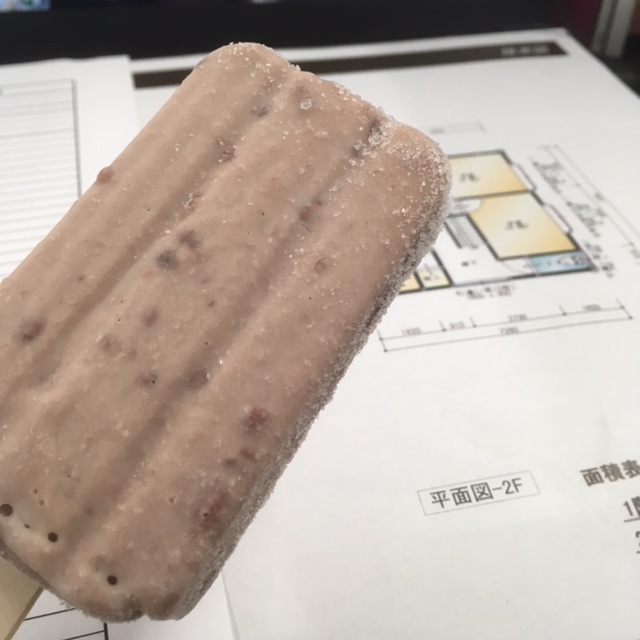 差し入れの「あずきバー」を食しながら図面と見積りとにらめっこ。