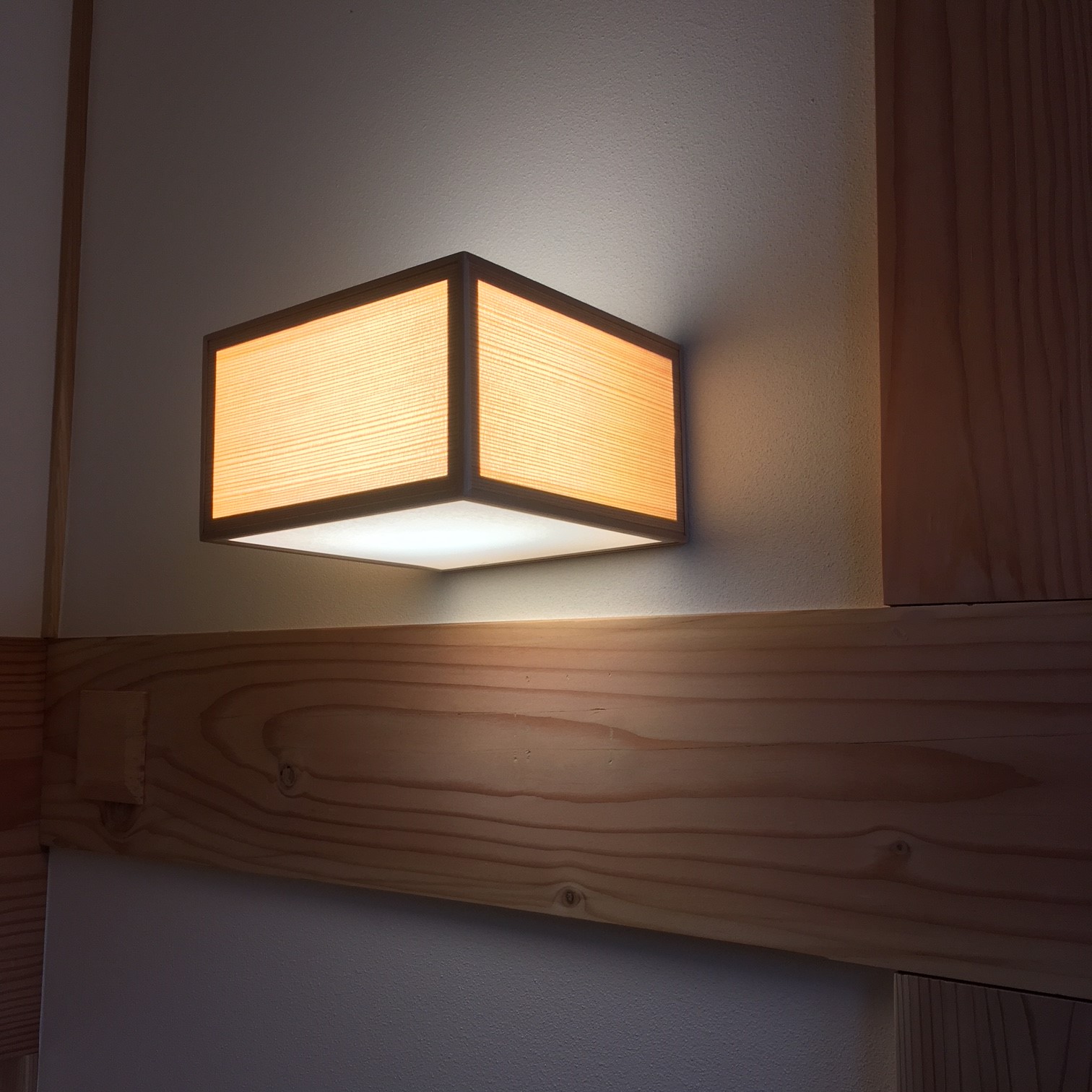 秋田杉の綺麗な木目と和紙の柔らかな光があたりを優しく包んでくれます。