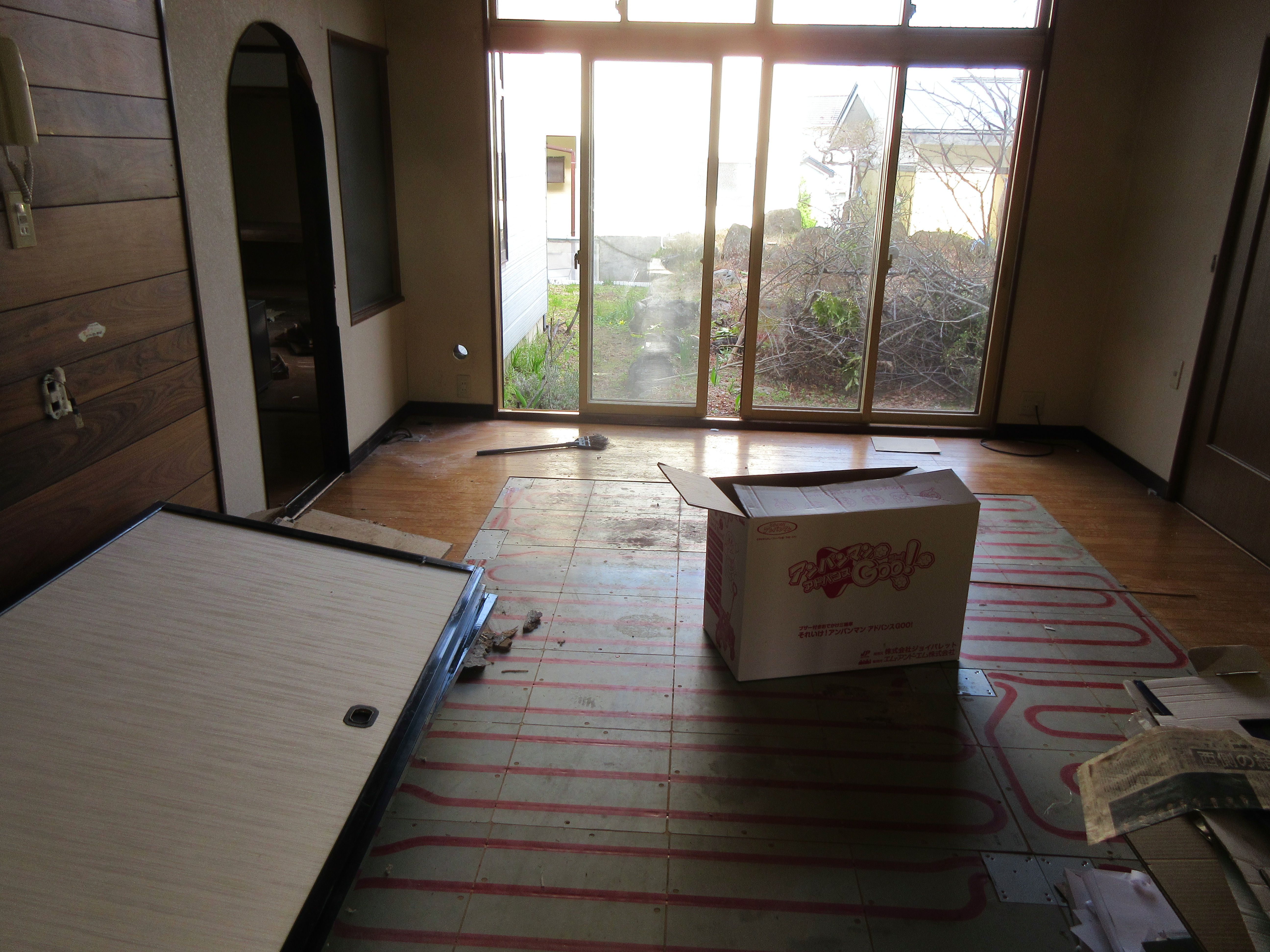 既存の床は剥がし赤松床30㍉を敷き込む予定です。