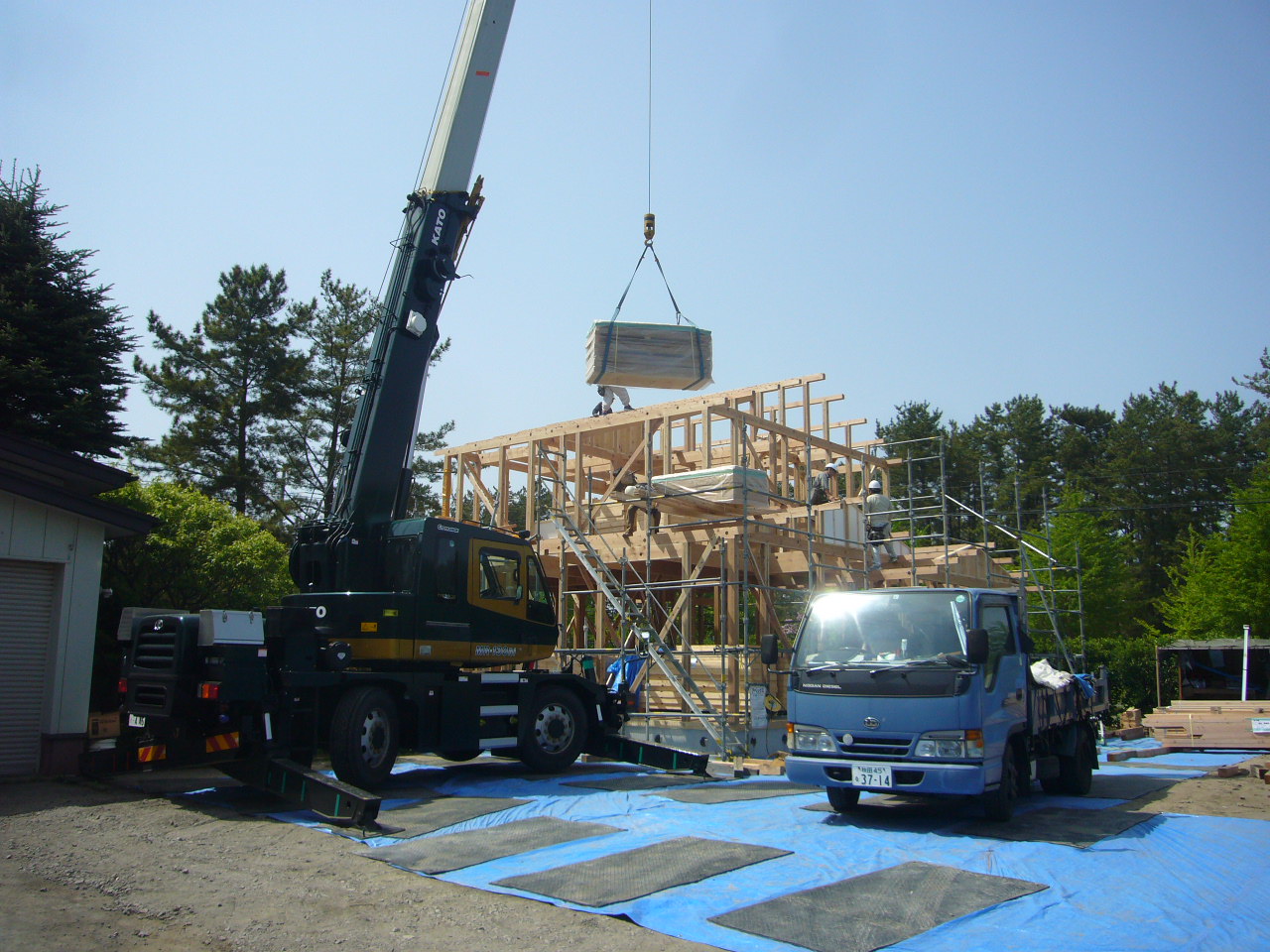 大潟村K様邸ですが建て方が始まっております。