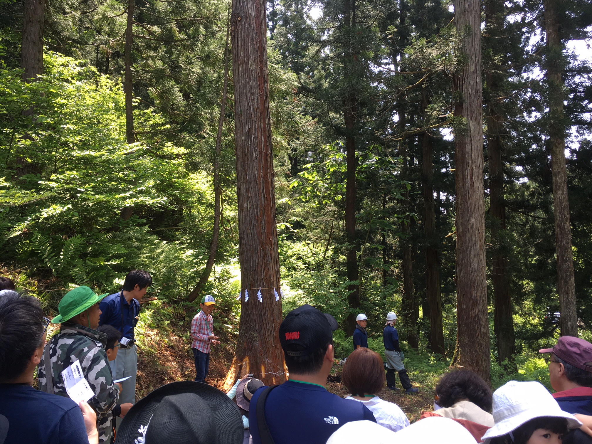 こんにちは、高橋です。 先週の土日、新潟夢ハウス主催の伐採ツアーにお客様と参加してまいりました。 結構前の方に陣取りましたので写真では分かりませんが、総勢350名の参加でした。 昨年末のTV全国放送で紹介された「夢山荘」の影響が大きいようです。 伐採は樹齢112歳の杉。 植林杉ですが5代にわたって大切に育成された良木でした。 この後は夢ハウスさんのスタッフお手製の豚汁・カレーを堪能してまいりました。 お客様もとっても良い経験が出来たと喜んでおりました。 次回は秋にまた開催されます。 ご希望の方はぜひ一緒に参りましょう!!