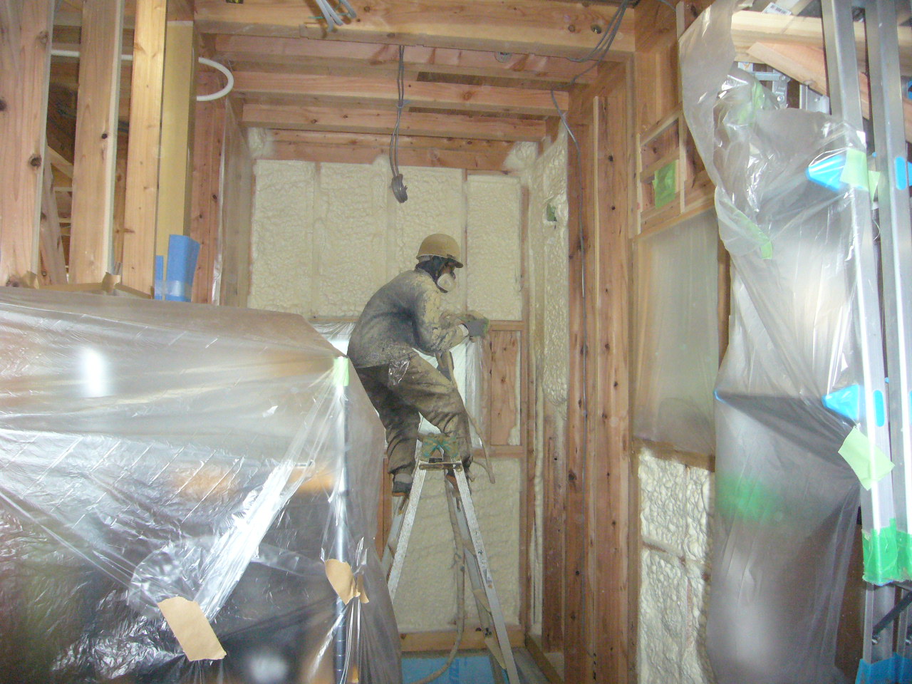 大仙市協和Y様邸も壁面の断熱吹付を行いました。