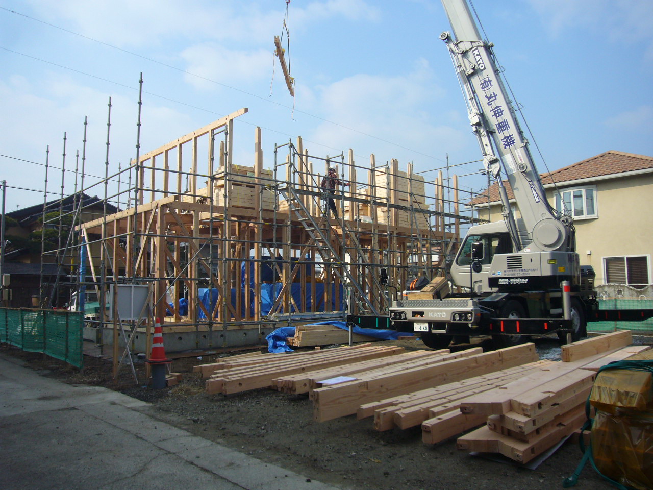 秋田市南通K様邸の現場では現在建て方を行っております。