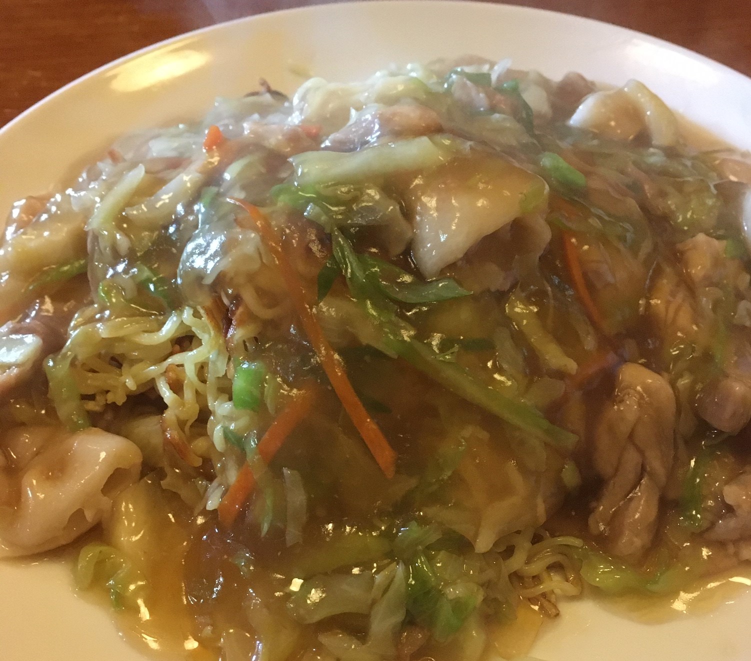 もうひとつおまけ。 秋田市役所裏にある「河南」というお店のランチ限定あんかけ焼きそば。 少し細麺でところどころカリっと揚げ焼きにしてあるところが良くて、豚肉と鶏肉がたんまりのった餡も美味しい。 半分くらい食べたら酢をかけたりして味変を。実は今日の昼食べたのですが美味しかった~。。。