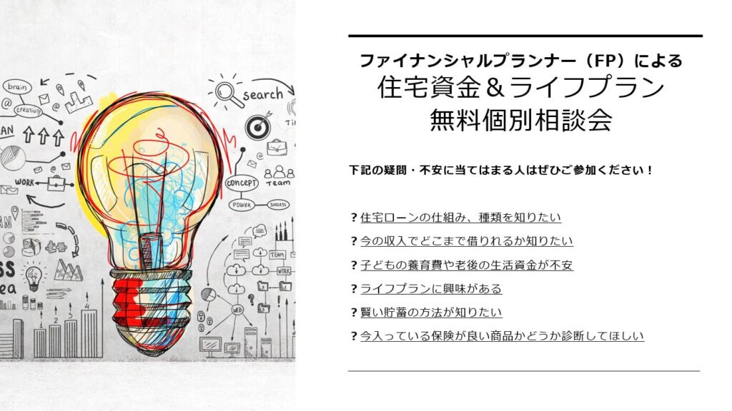 人生で一番の買い物をするこのタイミングで、ご家族の成長からご自身の老後を見越したライフプランを作成し、安心して住宅ローンを組んでいただけるようサポートさせていただきますので、ぜひ家づくり勉強会と併せて無料相談会をご利用ください。